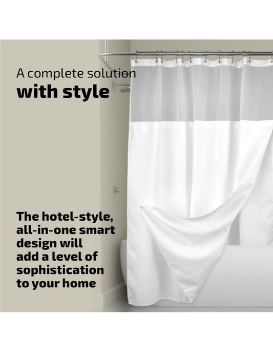 Maisonware Heavyweight Fabric and Mesh Top Window Shower Curtain (No Hooks)