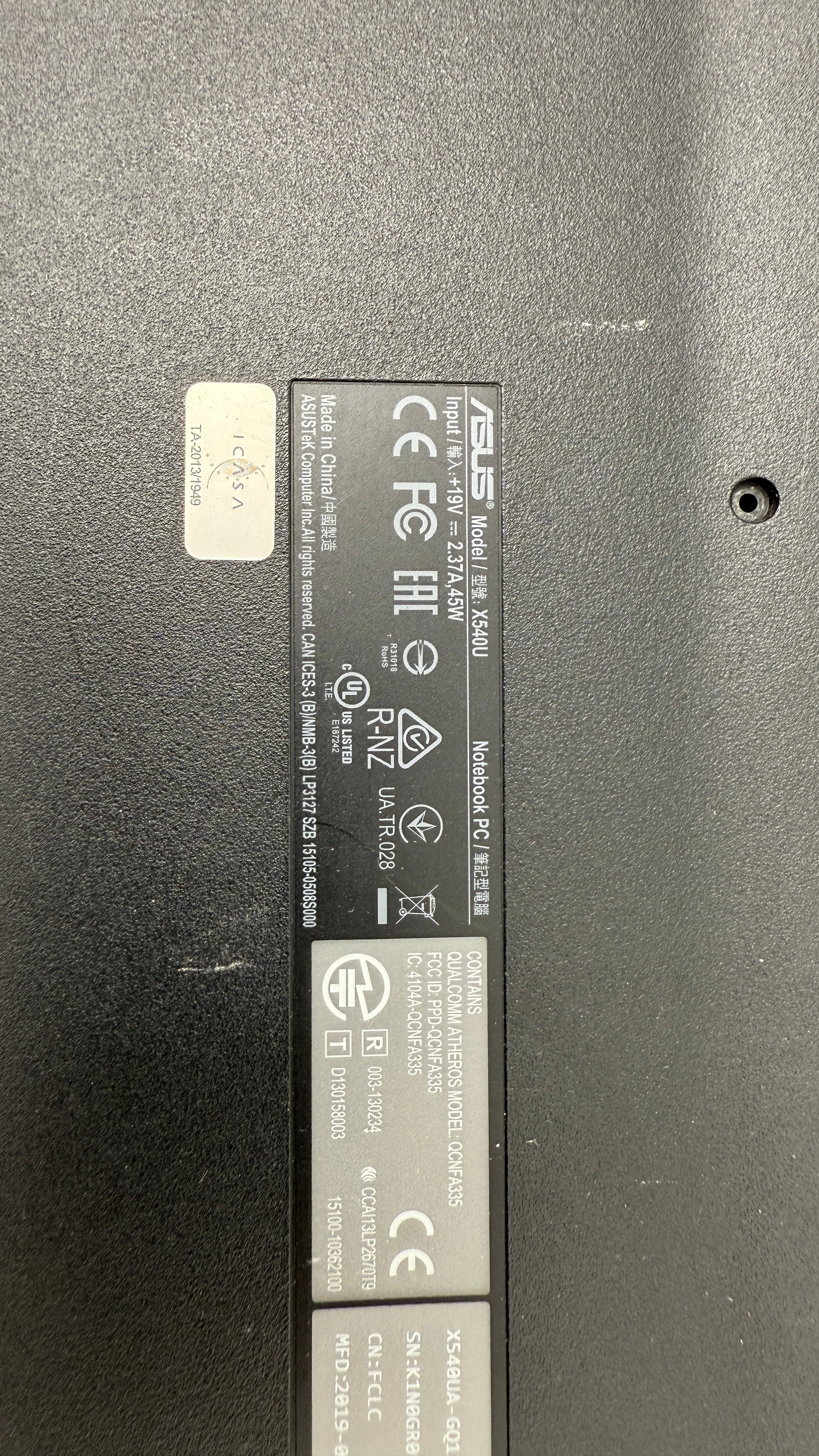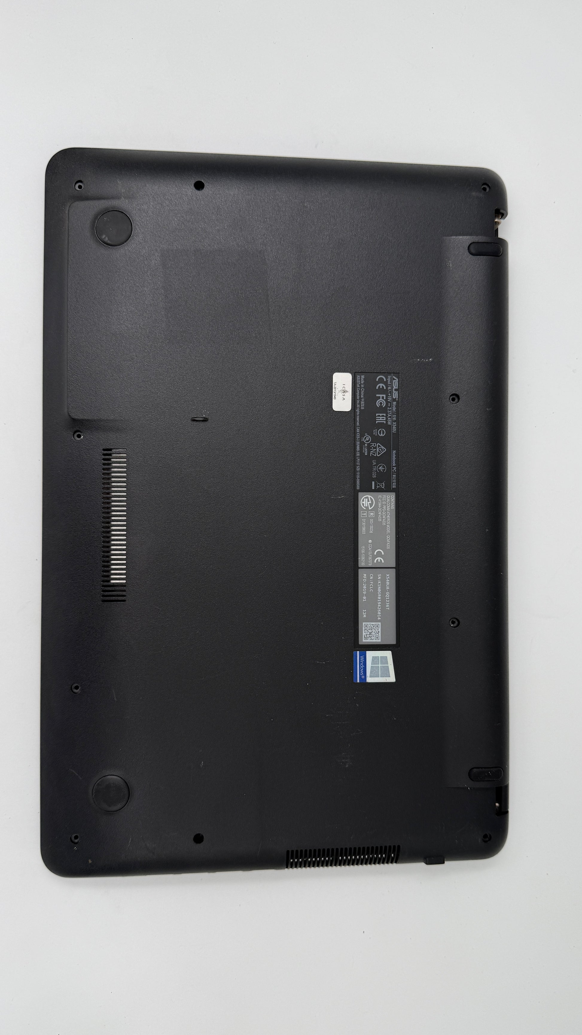 Asus Model X540U outer case. Bottom and top with hinge